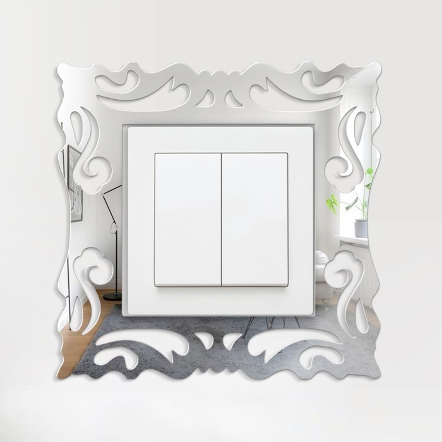 яяяДекор настенный, наклейка на выключатель из акрила, 15х15 см, серебро 7111645