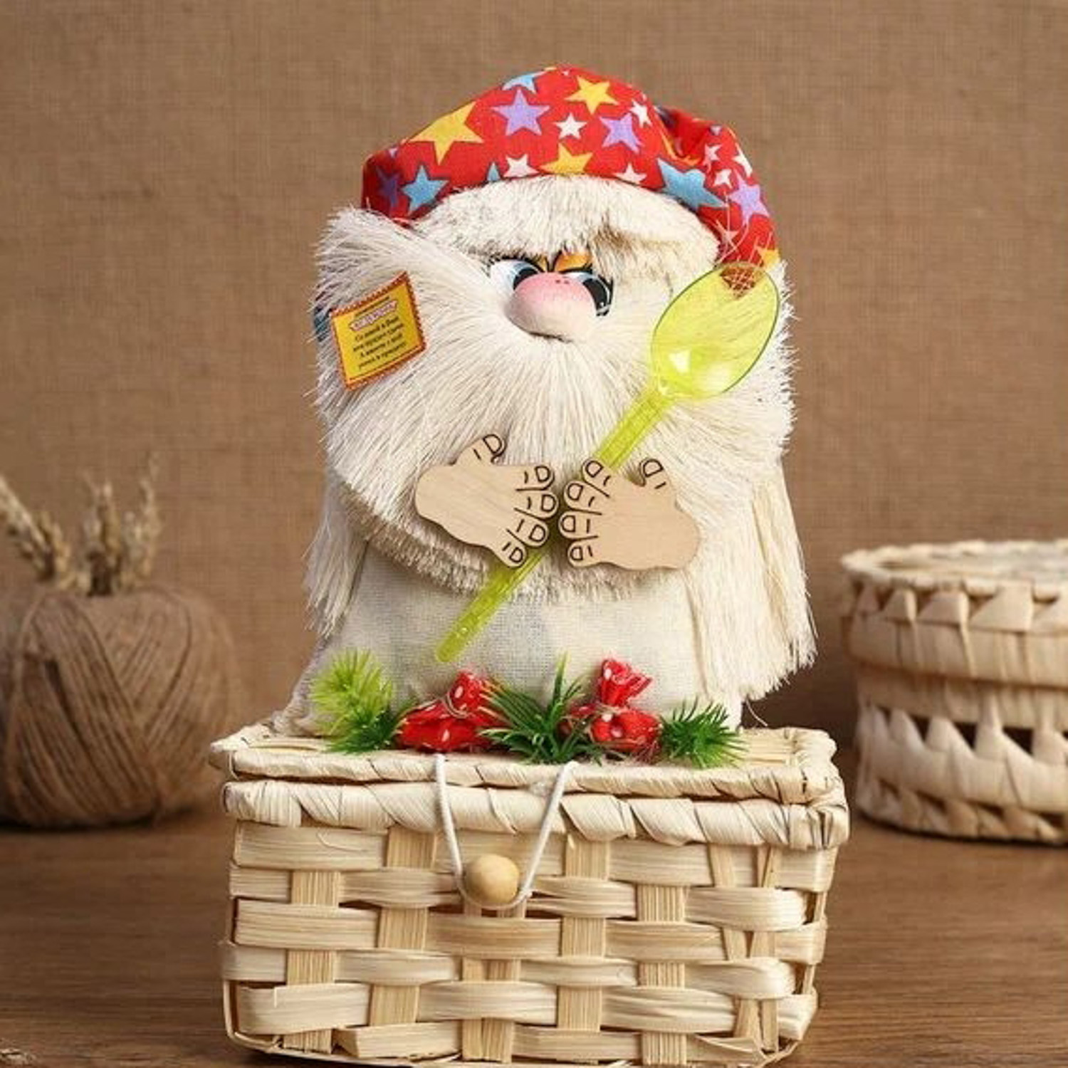 Оберег - шкатулка «Домовой с ложкой», 25 см, микс 2690150
