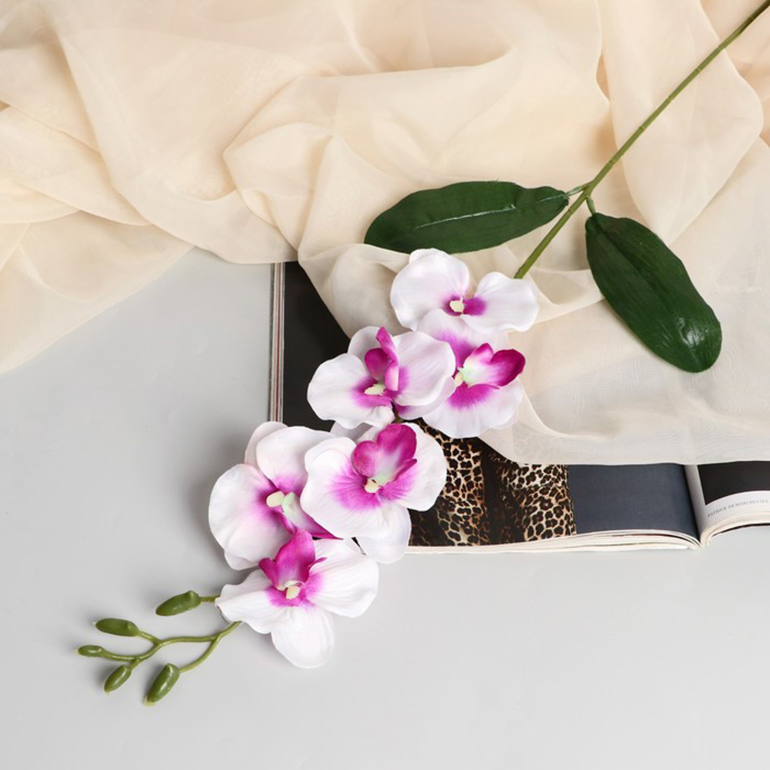 Цветы искусственные орхидея пышность 60 см белый 701086