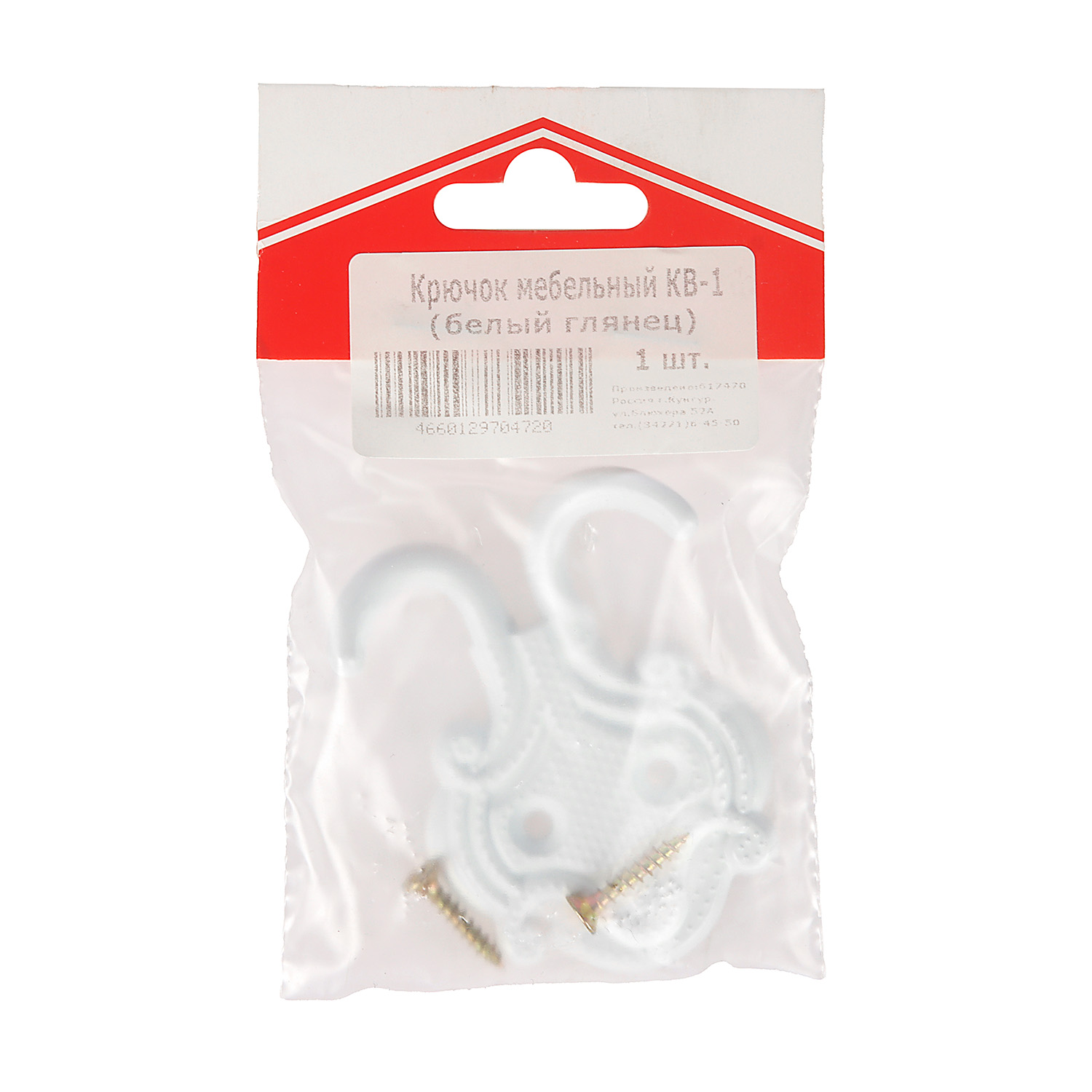 Крючок мебельный БЕЛЫЙ глянец КВ-1 "Точки" ДомоСтрой *10/100