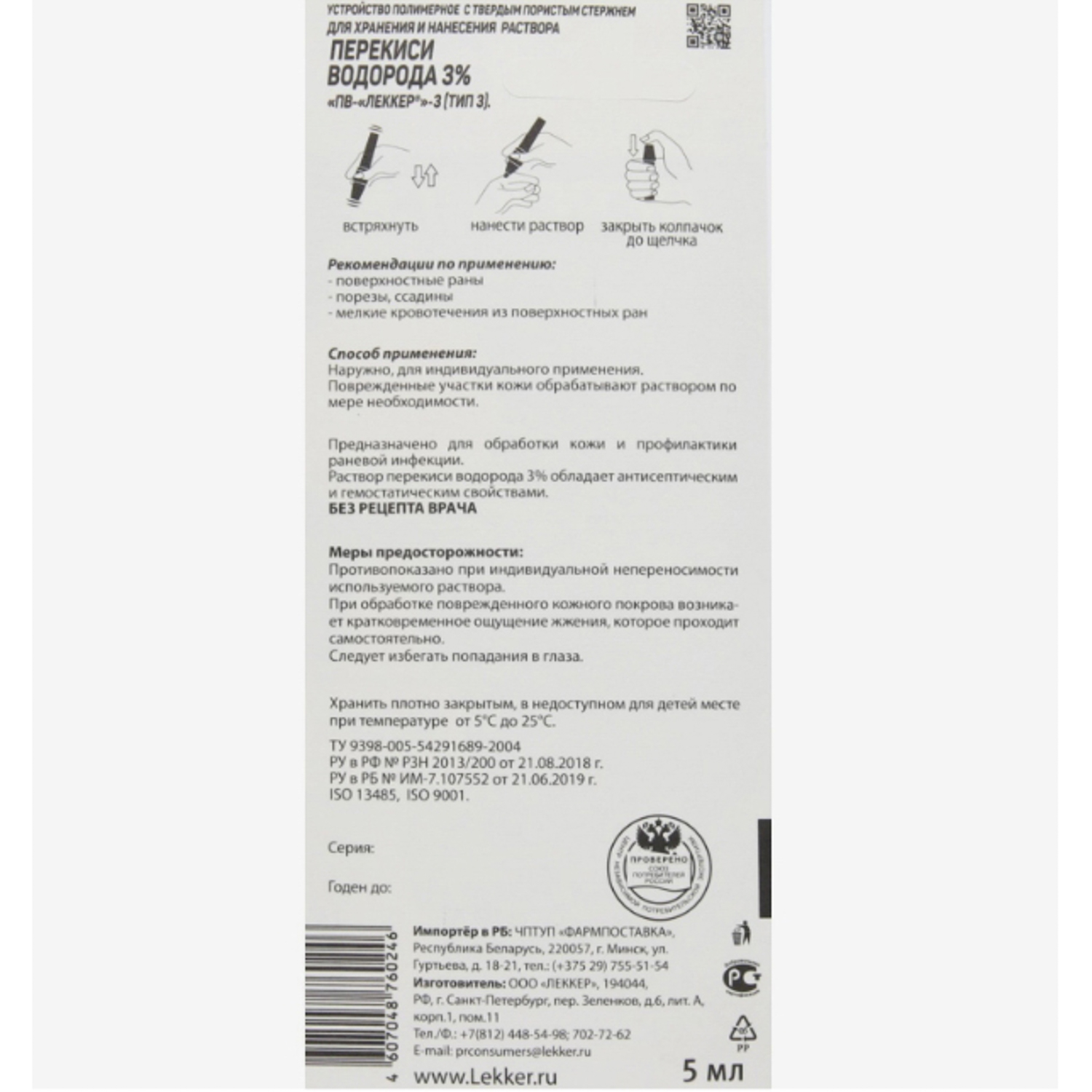 Перекись водорода Lekker тип-3, 5 мл. 1158085
