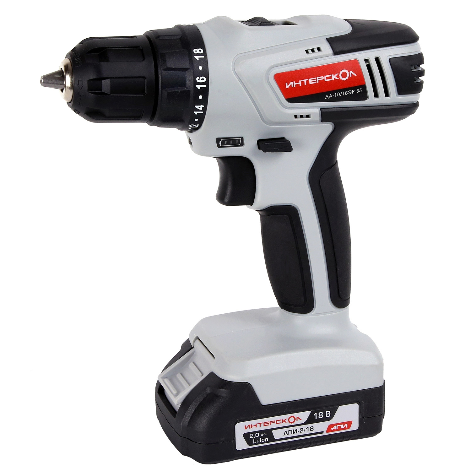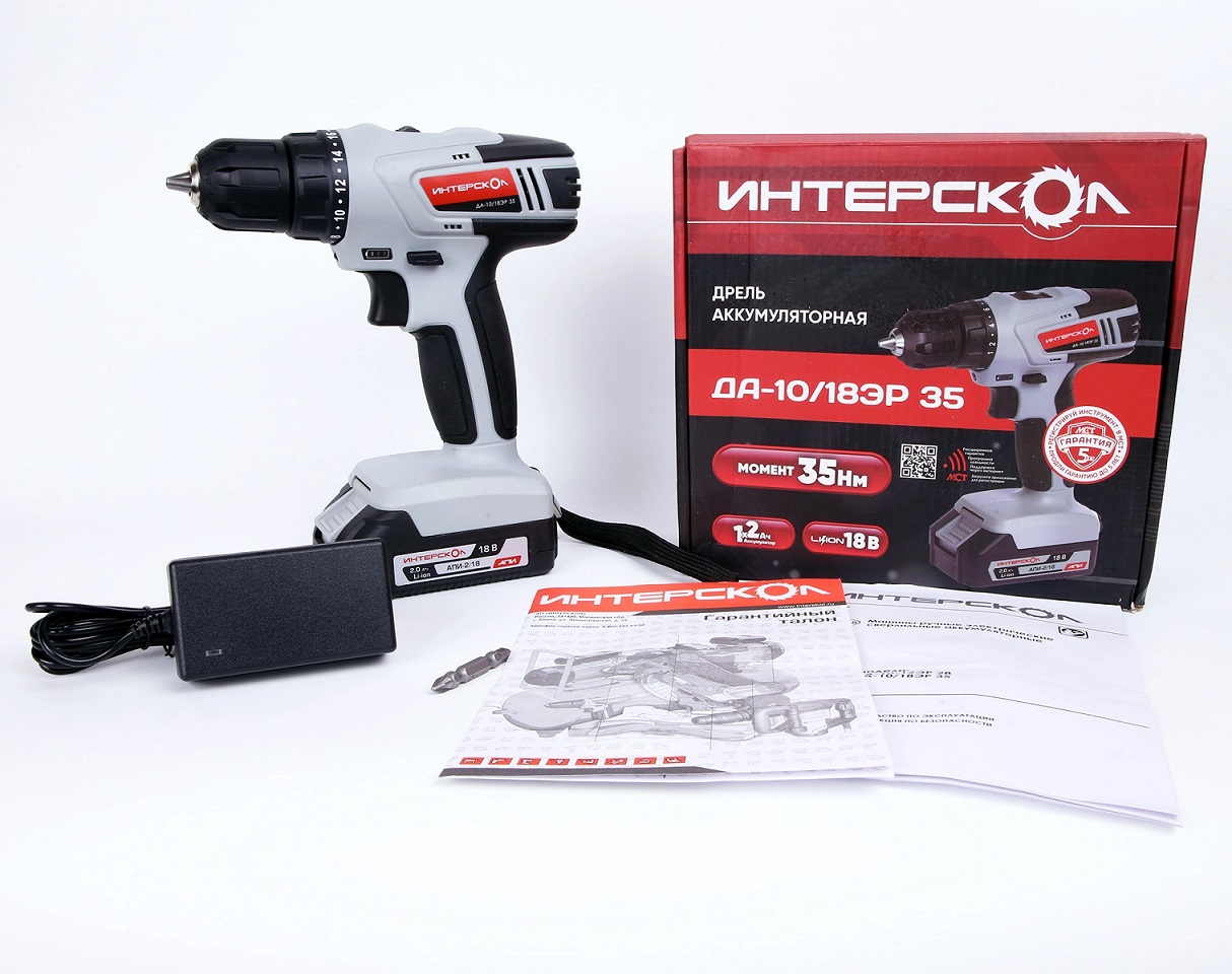 Дрель-шуруповерт 18В 2скор.0-450/0-1450об/мин 35Нм 2Ач 2аккум LI-ION ДА-10/18ЭР 35 ИНТЕРСКОЛ *1/8