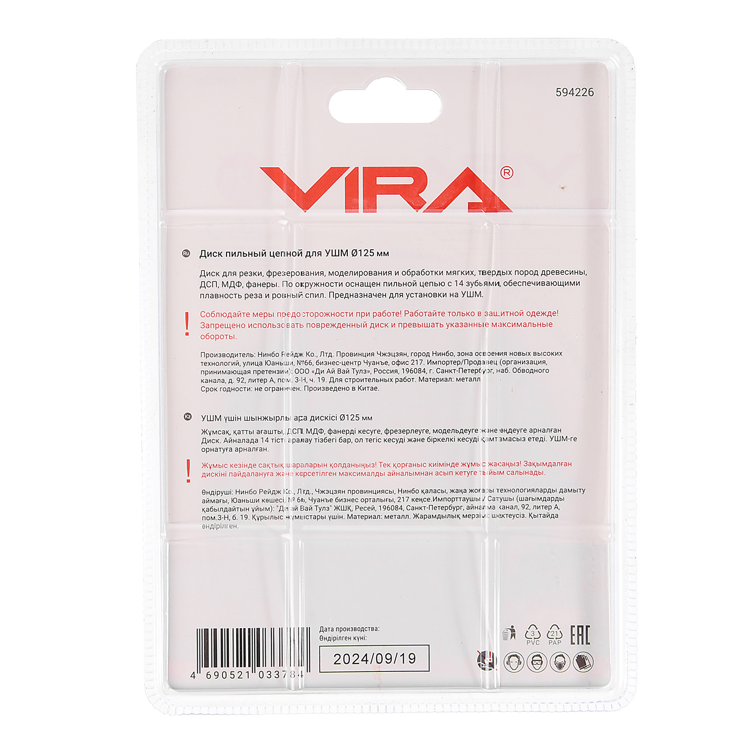 Диск пильный цепной для УШМ 125 мм VIRA