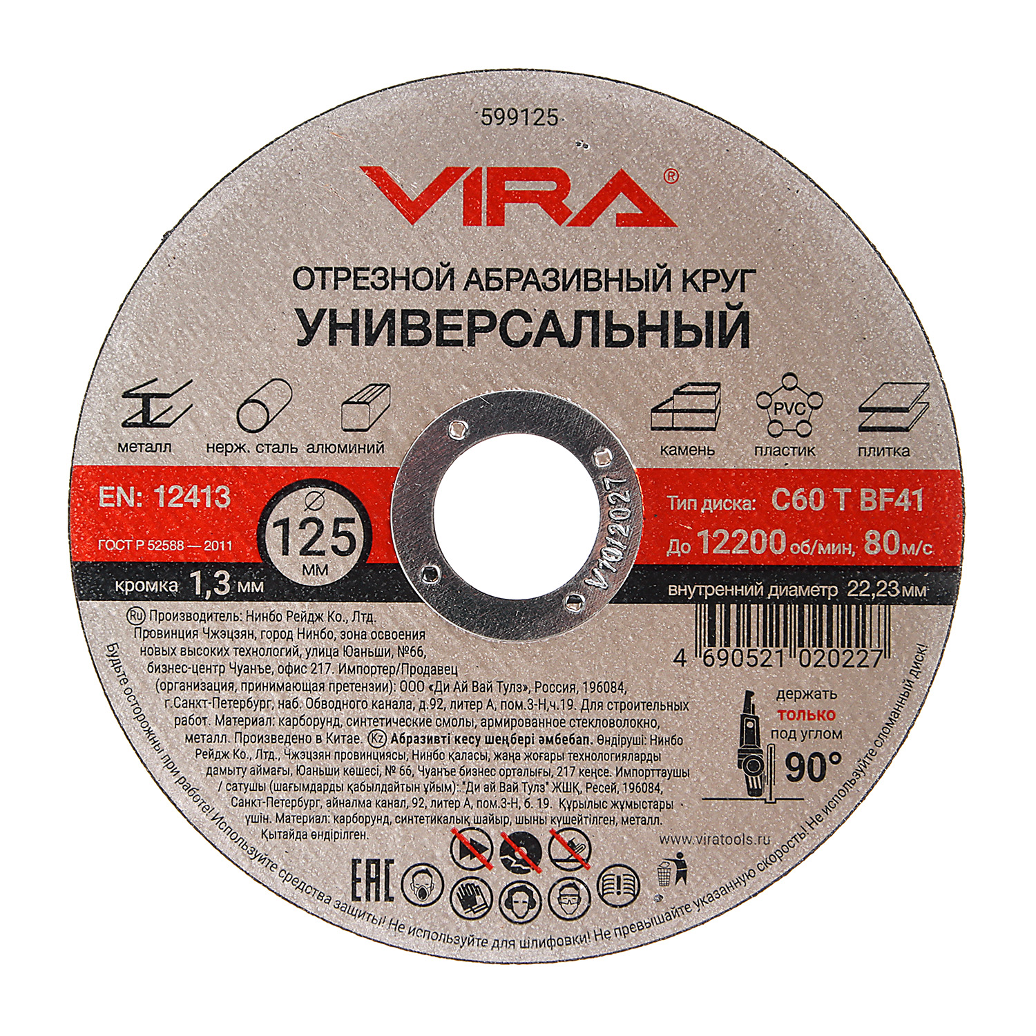 Круг отрезной абразивный универсальный 125 мм арт.599125 VIRA *1