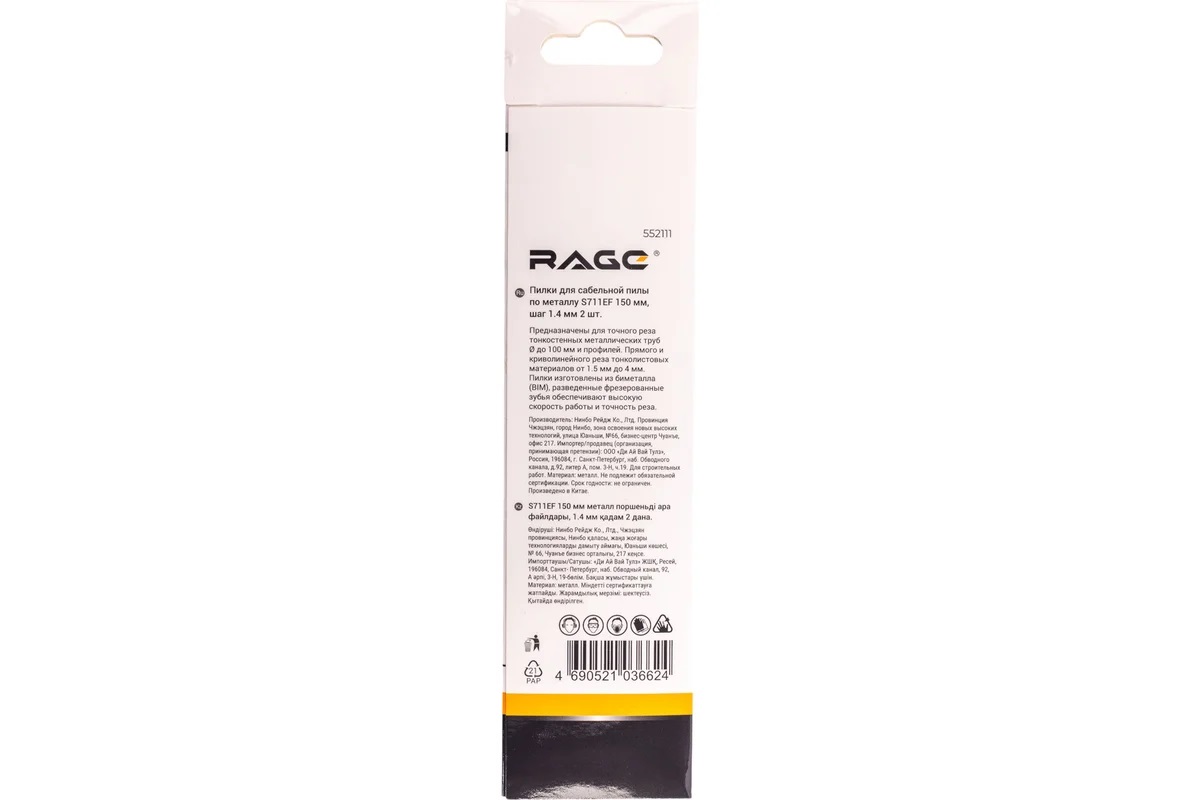 Полотно д/сабельной пилы МЕТАЛЛ 2шт 150/1,4мм прямой рез S711EF арт.552111 RAGE VIRA *10/100