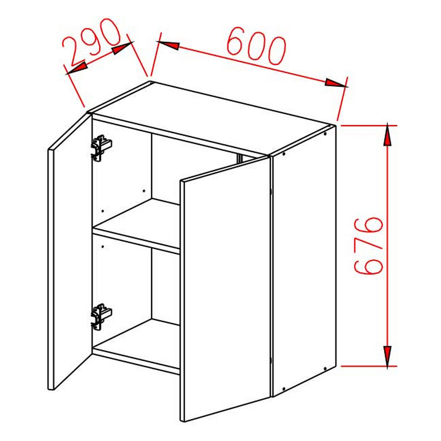Шкаф навесной 600х676х290 мм BROZEX-WOOD GreyWind, с двумя дверцами