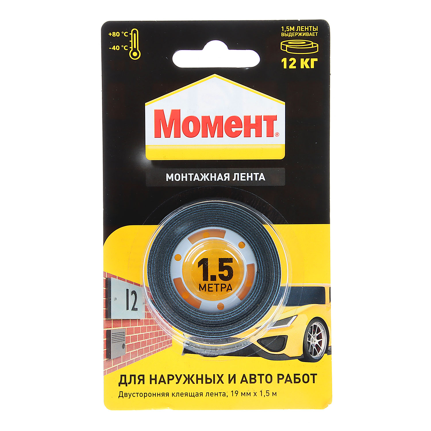 Лента клейкая двусторонняя 19ммх1,5м Черная 3002143 Момент (Хенкель) *1/10