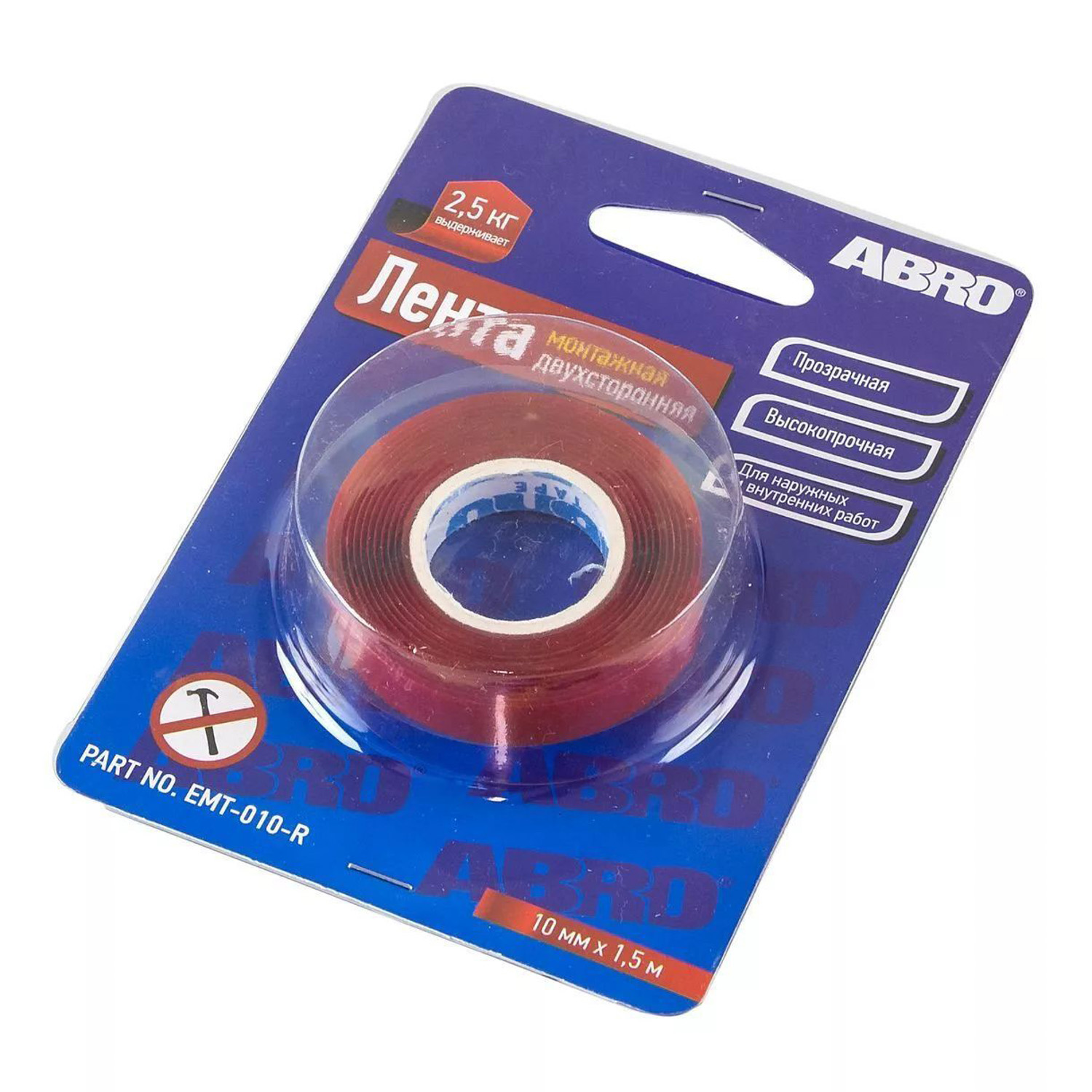 Лента клейкая двусторонняя Профессиональная Прозрачная 10мм х1,51м EMT-010-R "ABRO" *1/144