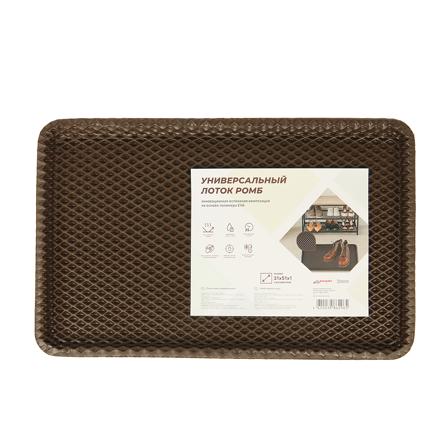 Лоток для обуви 31*51*1 см ЭВА "РОМБ" коричневый (арт.4625) *1/20