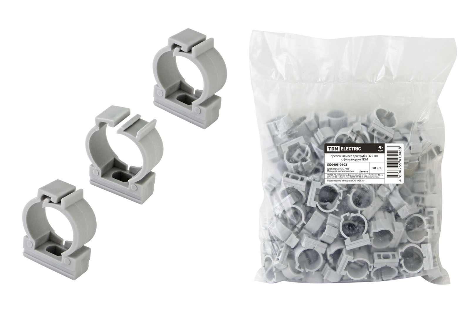 Крепеж-клипса d25мм (для трубы пвх гофро с зонд) с фиксатором упак.50шт TDM SQ0405-0103 *1/10/40