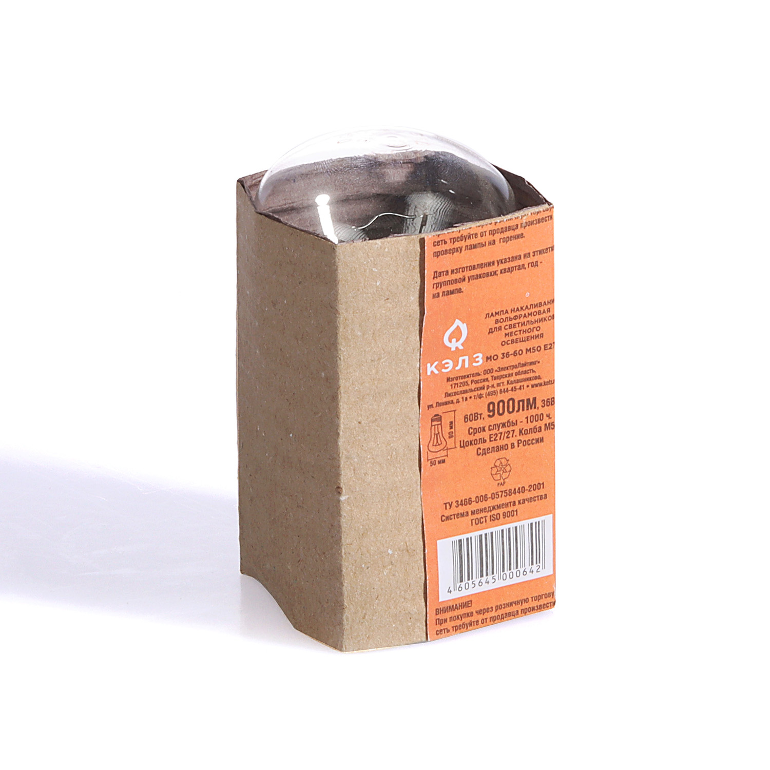 Лампа накаливания КЭЛЗ, Е27, груша, 60 Вт, 900 Лм, теплый белый свет