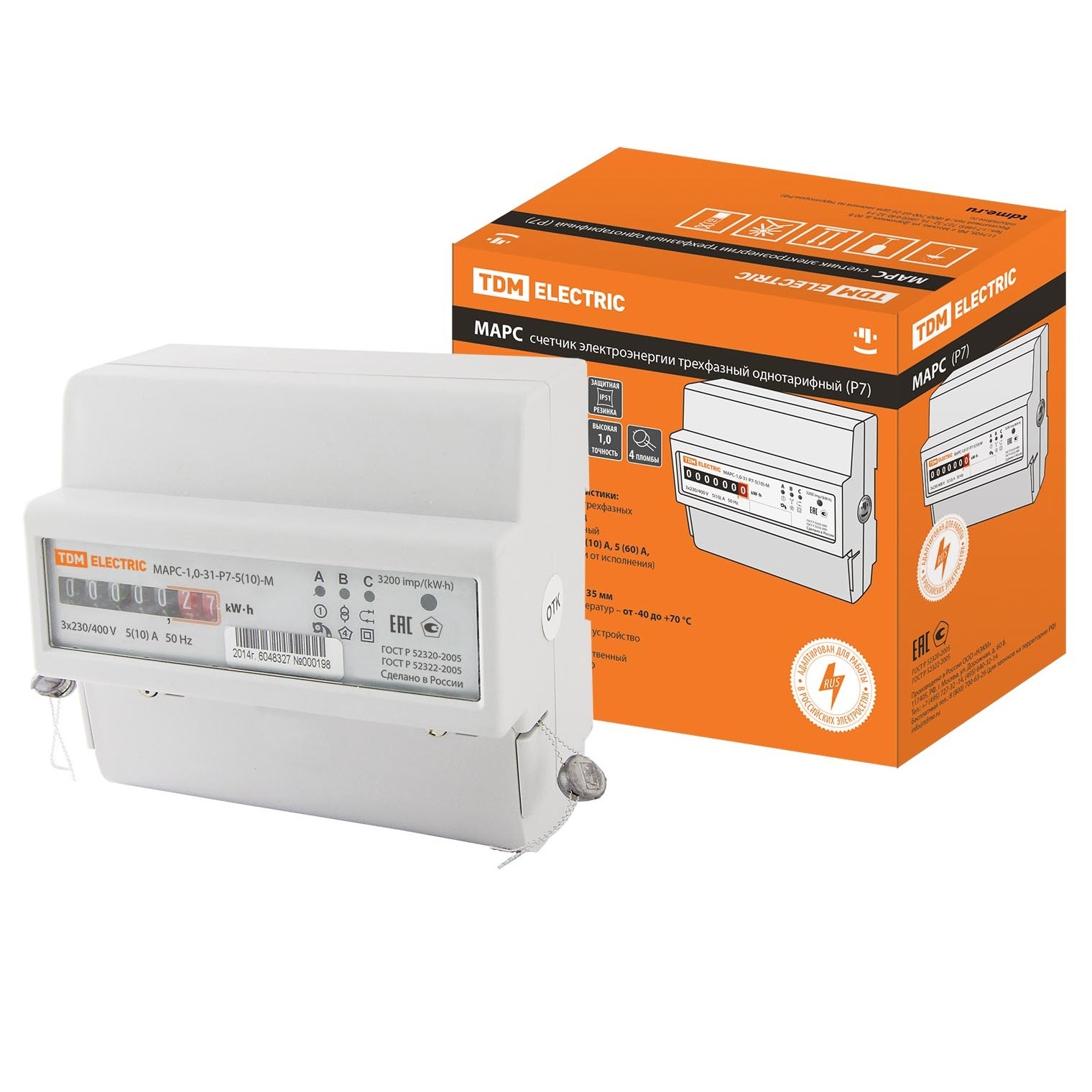 Счетчик однофазный "Марс" (3ф. однотариф., din-рейка, мех.ОУ) TDM SQ1105-0015 *1