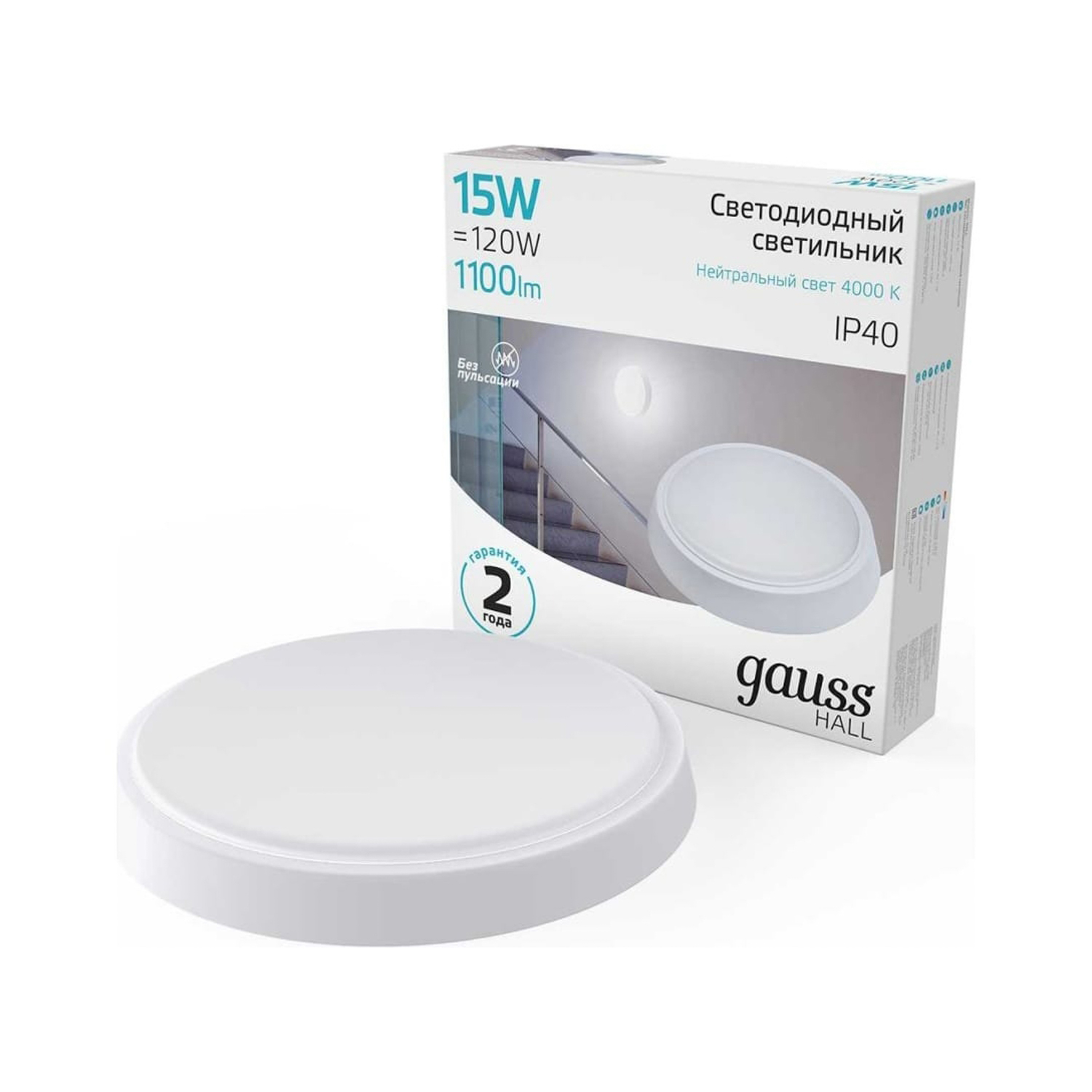 Светильник накладной светодиодный 15Вт 4.0K 1100Лм IP40 круг белый Gauss HALL 193411215 *1/40