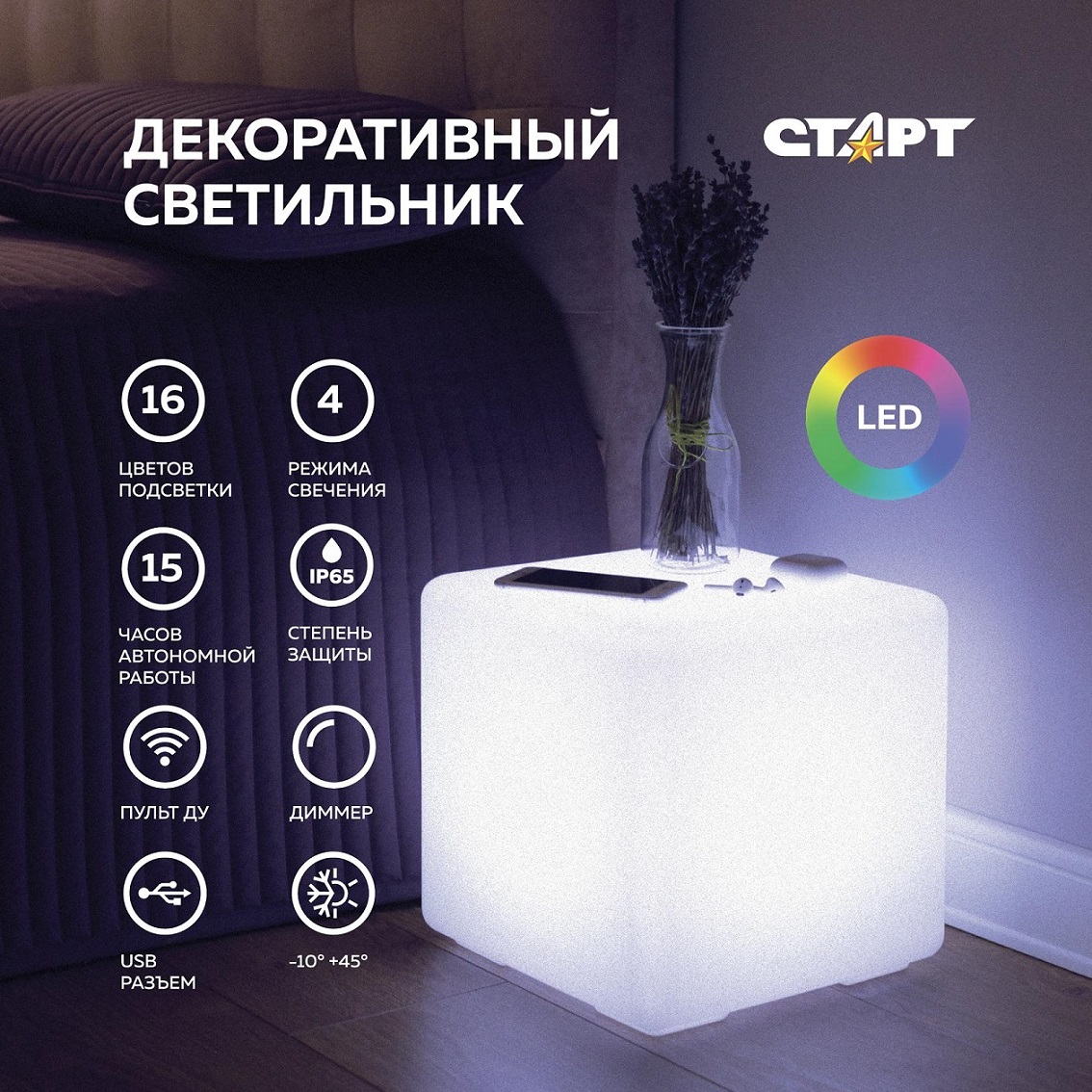 Светильник светодиодный Старт Cube 200мм *1/8