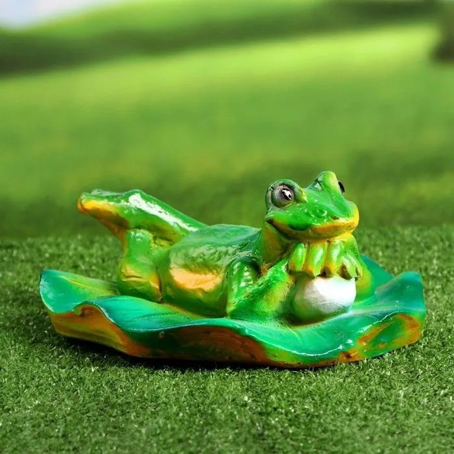 Садовая фигура "Лягушка лежит на кувшинке" 21х24х11см 9435332
