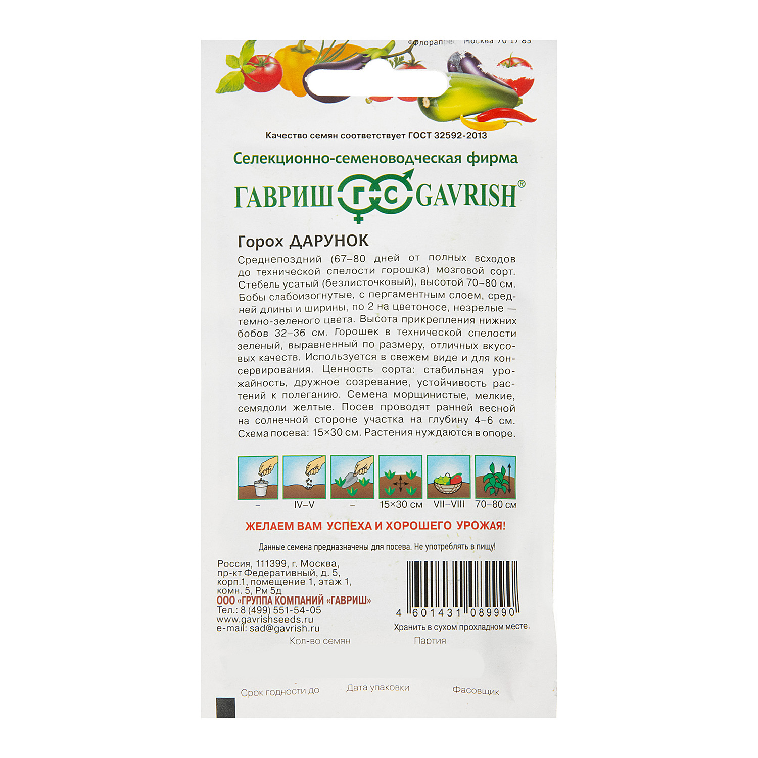 Семена Горох Дарунок безлисточковый 10 гр Гавриш*10/200