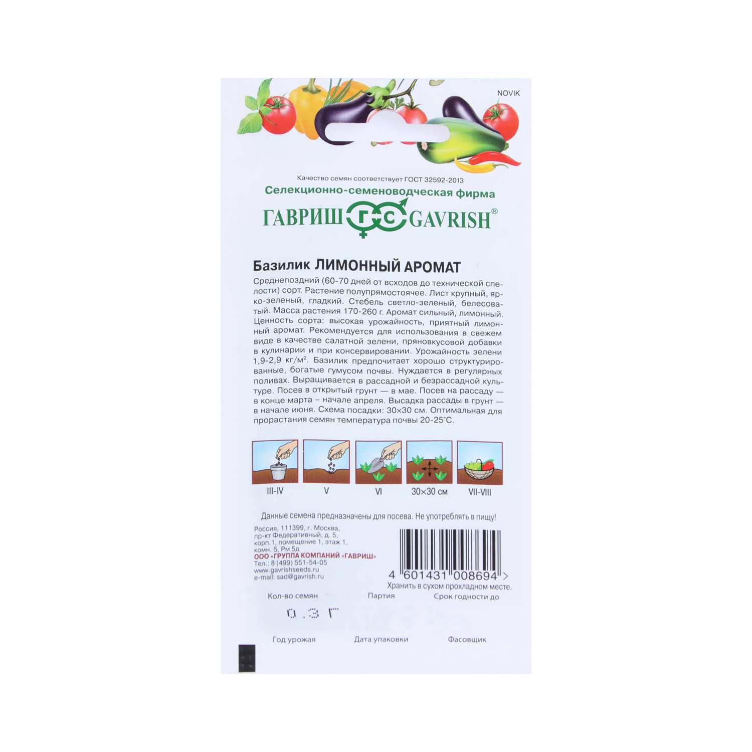 Базилик Лимонный Аромат 0,3гр Гавриш *10