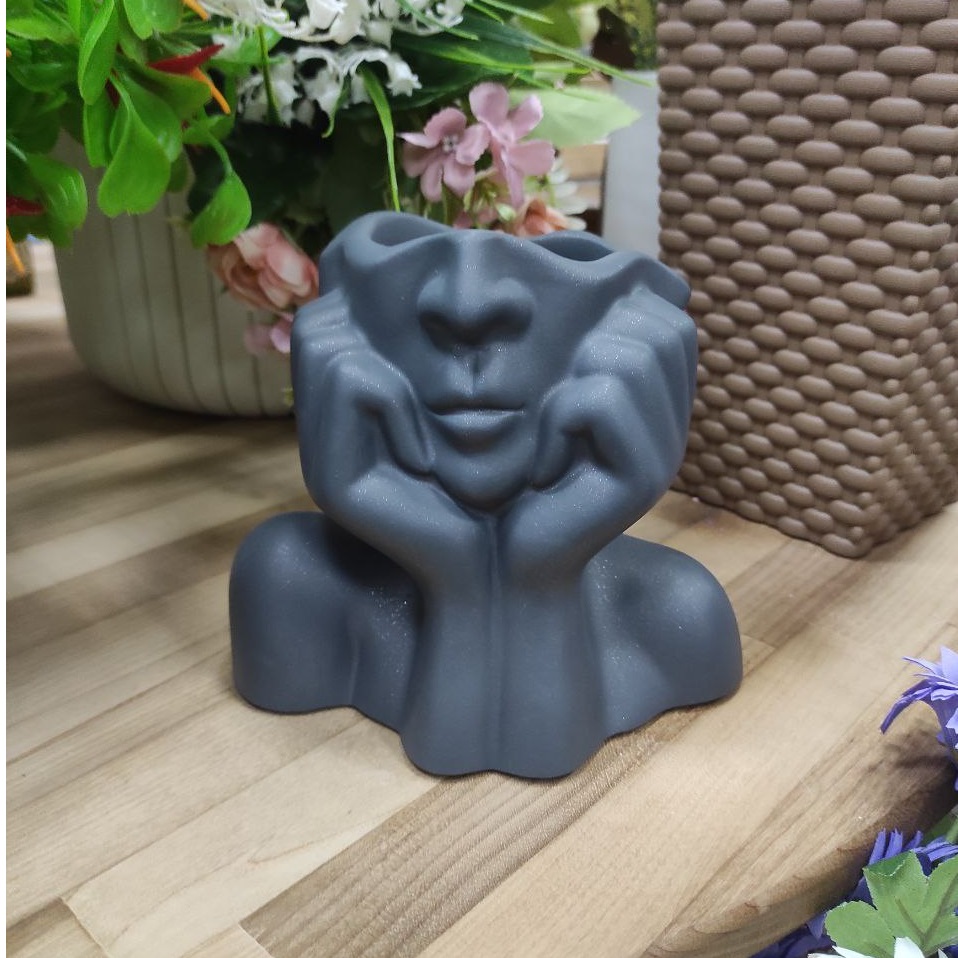 Кашпо гипсовое "Фьюжен" 1,2л 170х105мм h150мм Антрацит металлик ("VipSet") *1/4