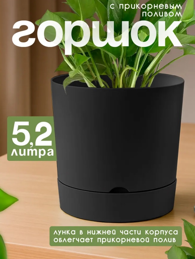 Кашпо пластм. "Гранд" 5,2л d верха 205мм h 205мм с поддоном Черный 5 0644 PL *1/6