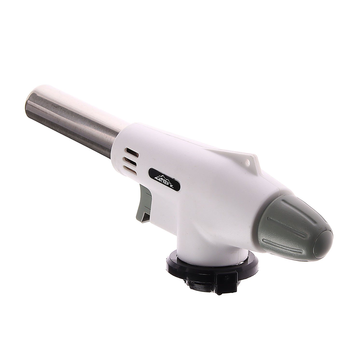 Газовая горелка Мастер К – незаменимое приспособление для дома, дачи и отдыха на природе. Благодаря пьезоподжигу горелка быстро зажигается в любых условиях без необходимости использовать спички или зажигалку. Имеет регулятор подачи газа и керамическое сопло диаметром 2 см. В качестве топлива необходимо использовать баллоны с цанговым захватом. Насадка обеспечивает герметичное крепление.