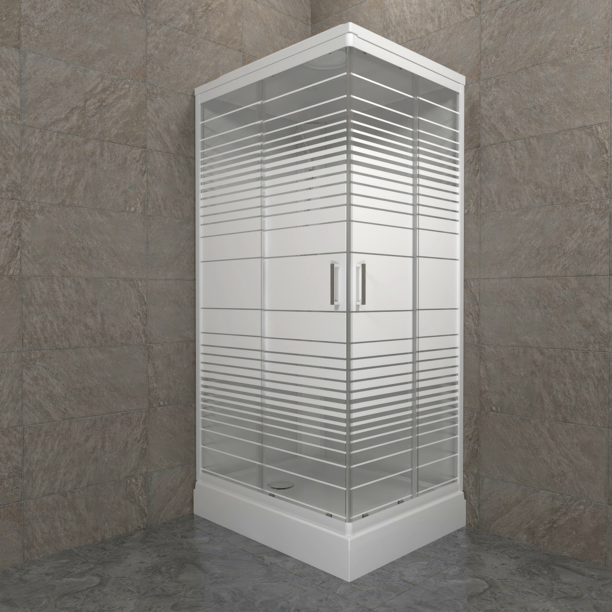 Кабина душевая 120*80*228 Квадро NEW А поддон прямоугольный низкий белый, стекло Полосы, (8уп)