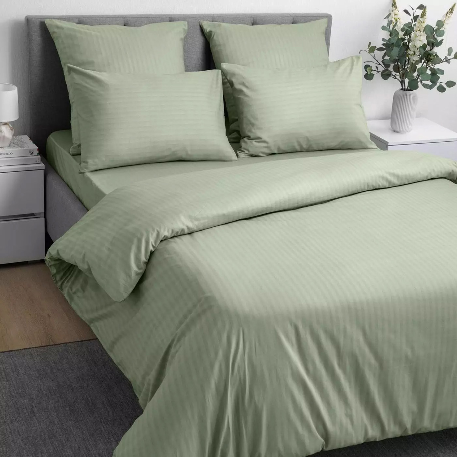 Постельное белье евро поплин Волшебная Ночь 8709/6 Smoke Green, наволочки 70*70 - 2шт *1/6