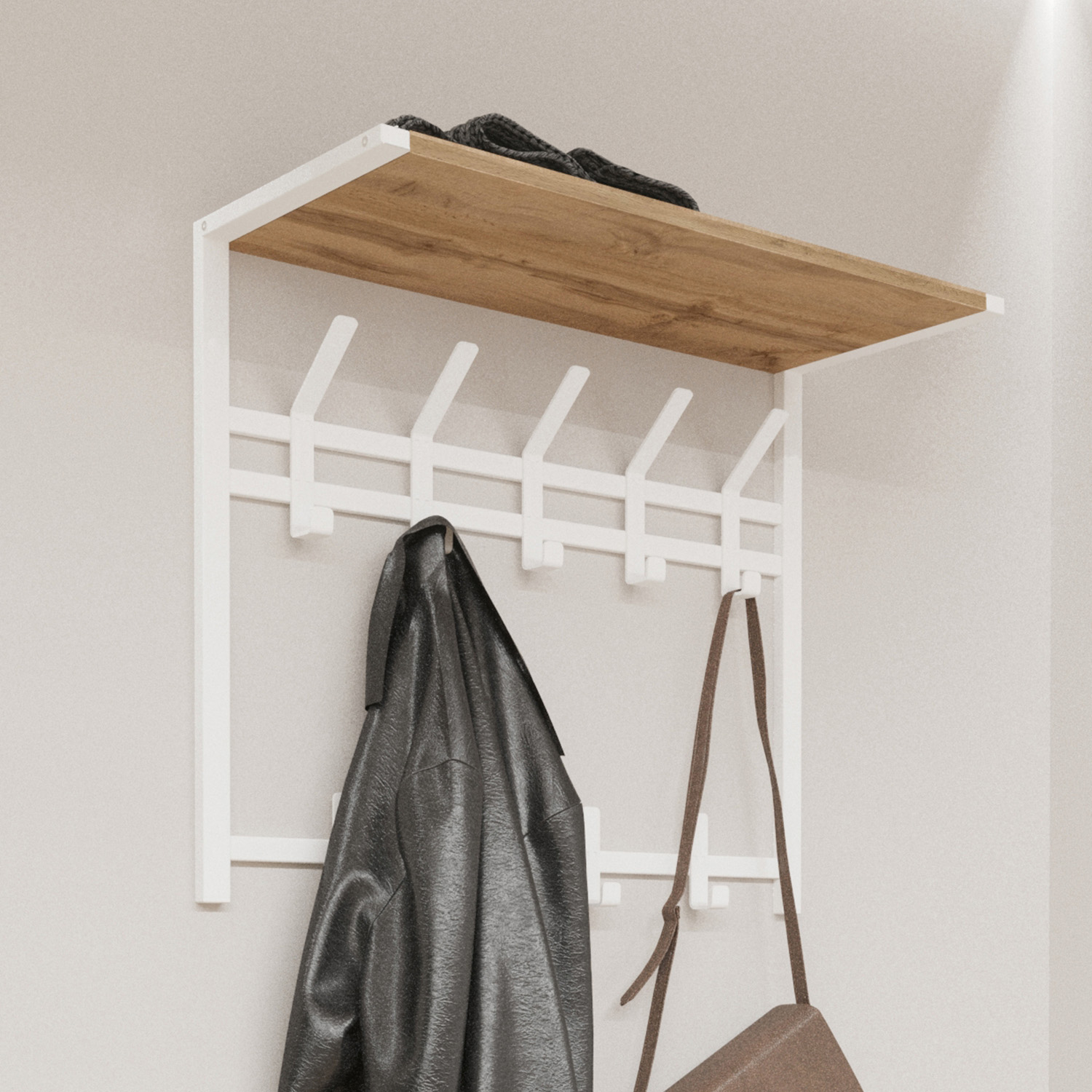 Вешалка настенная с полкой 2-х ярусная 670х270х545мм "Торонто 22Д" Белая ВСПТ22Д Б ("ЗМИ") *1