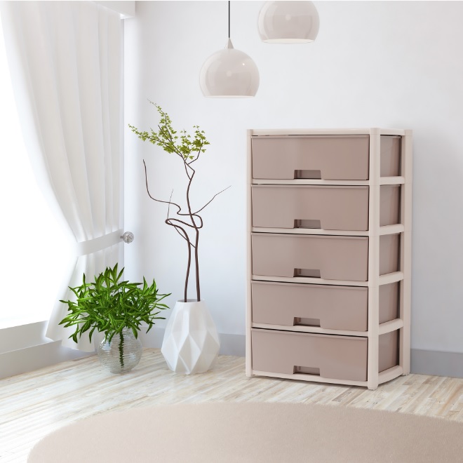 Комод пластм. "Колорит" 5 ящиков выс.1000мм, шир.560мм, гл390мм Беж/св.Беж.М8760"ЗПИ"Альтернатива"*1