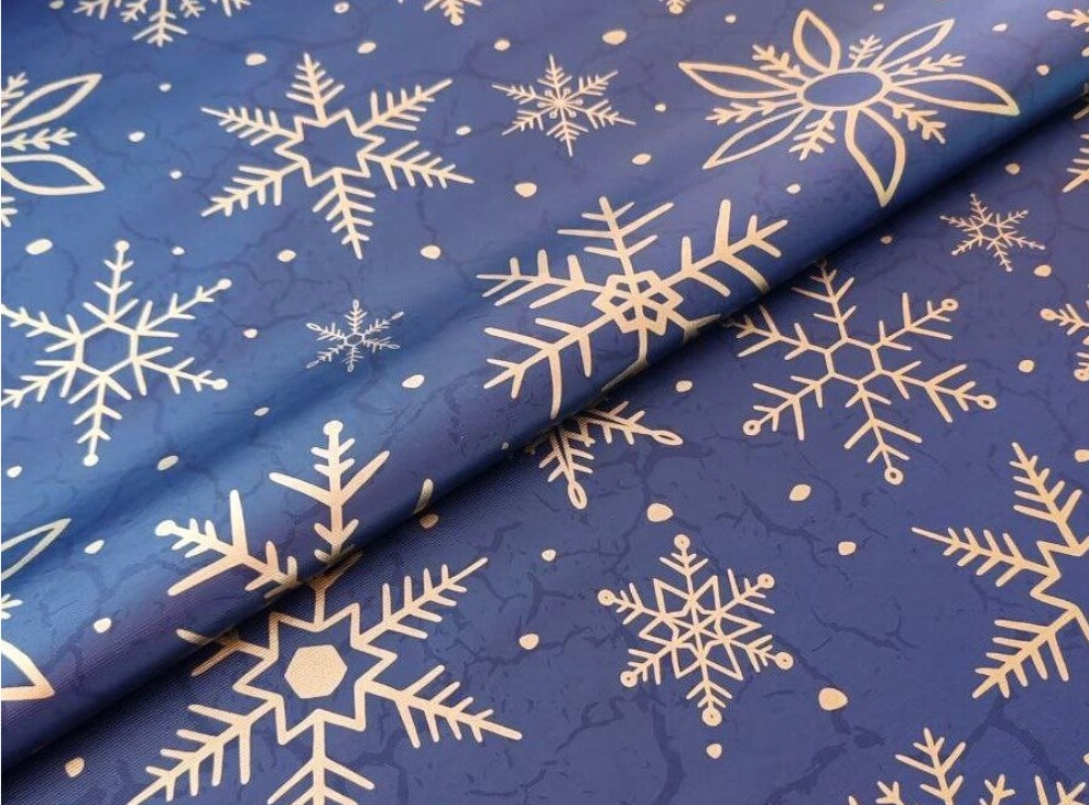 Клеёнка на тканевой основе "Print" "Снежинки золотые" синий фон шир.1,37м GW-21770 "Great Way" *20