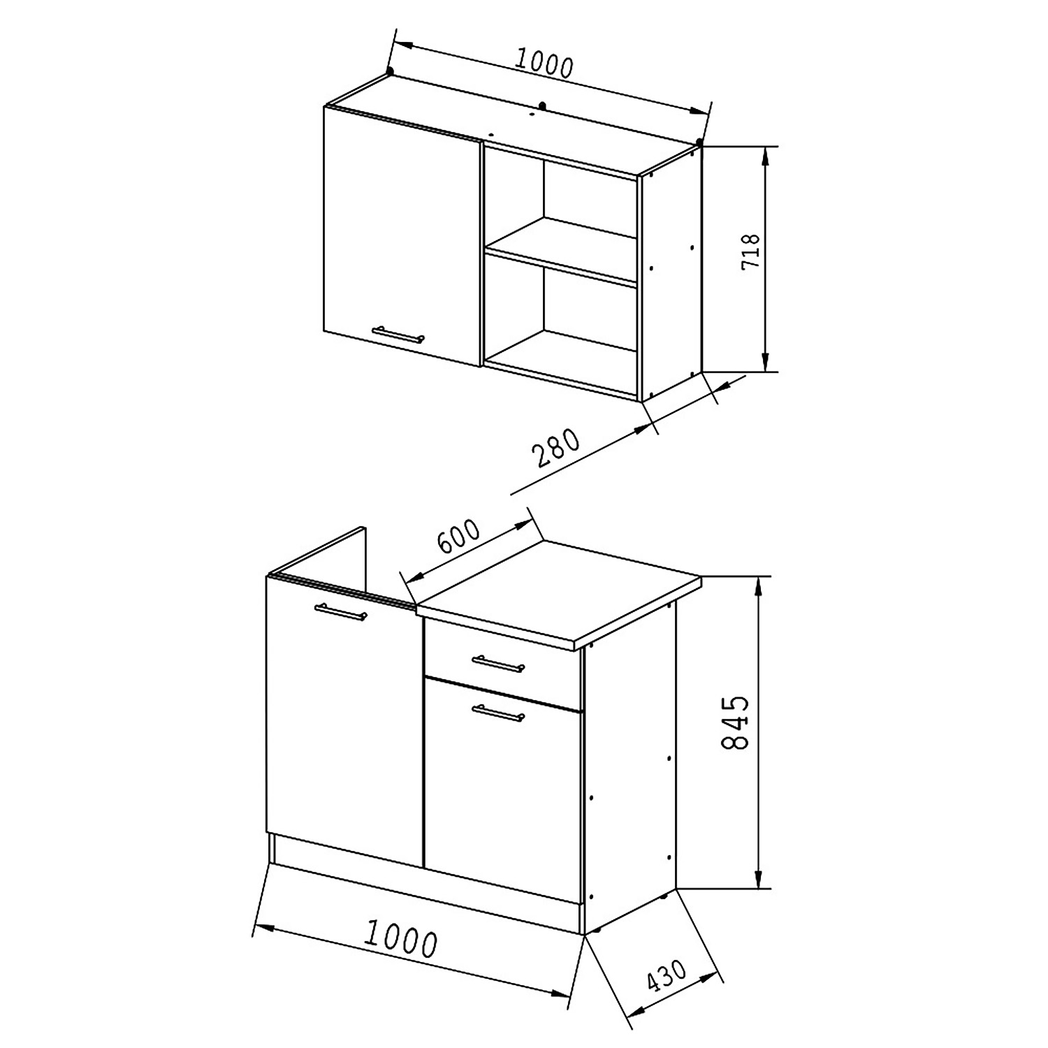 Длина кухни: 1000 мм.