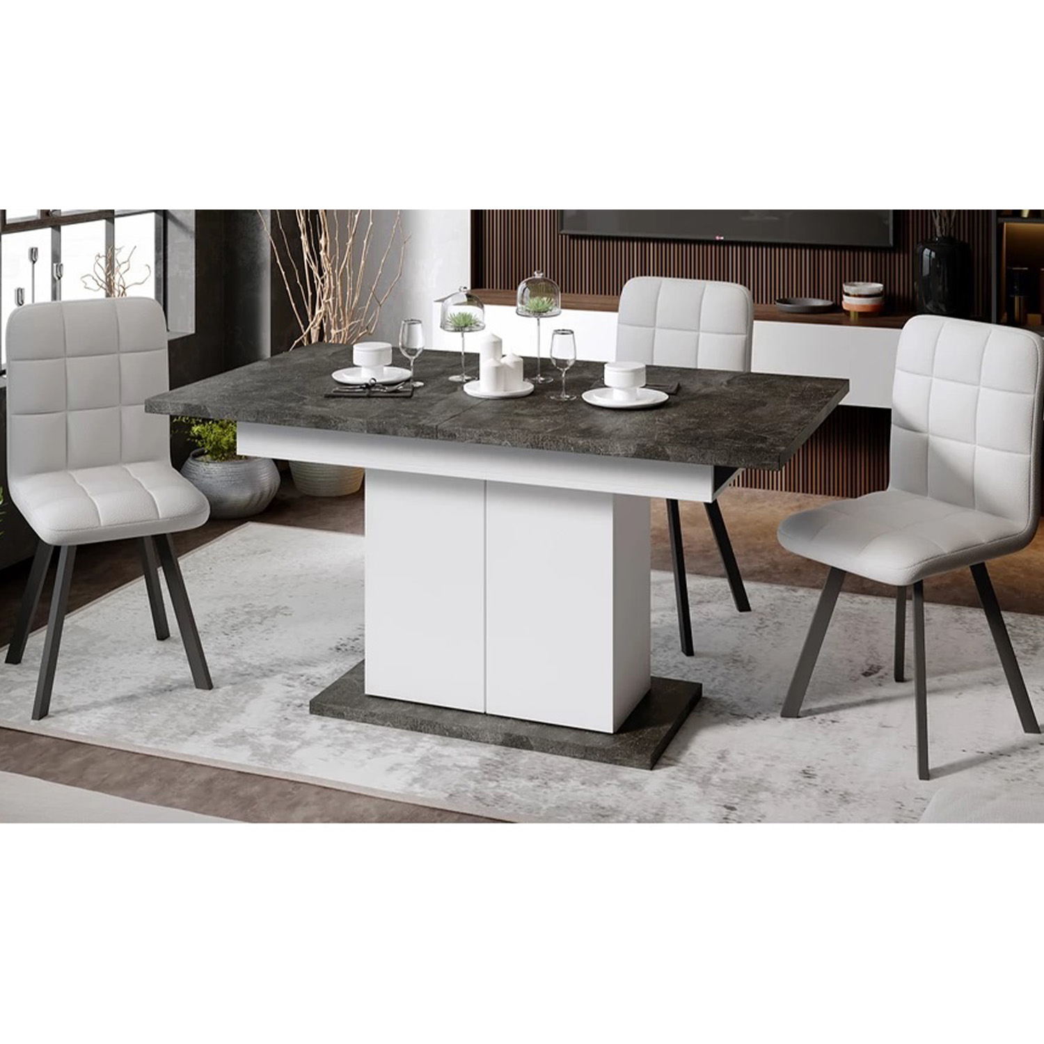 Стол обеденный прямоугольный раздв.Детройт Тип1 850х1504(2014)х h770 Белый, Ателье темный*1