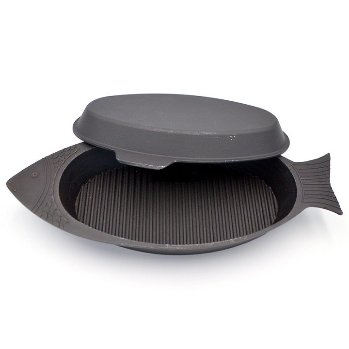 Сковорода чугунная "РЫБНИЦА" "Гриль" овальн.с Крышкой-Сковородой (рыбница-КАл)(Балезино) *1/3
