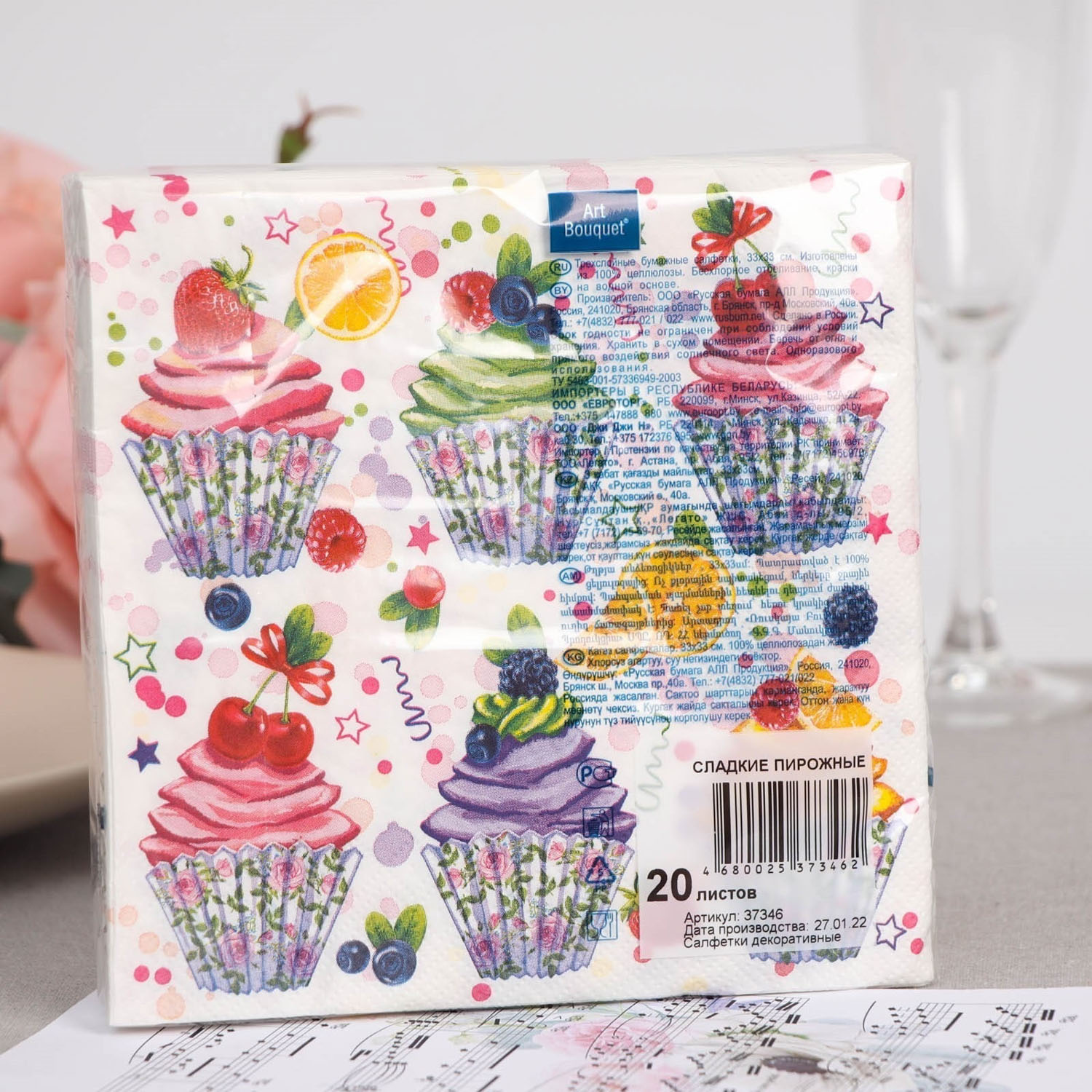 Салфетки бумажные Art Букет Сладкие пирожные 33*33 20л 3слоя 37346 *12