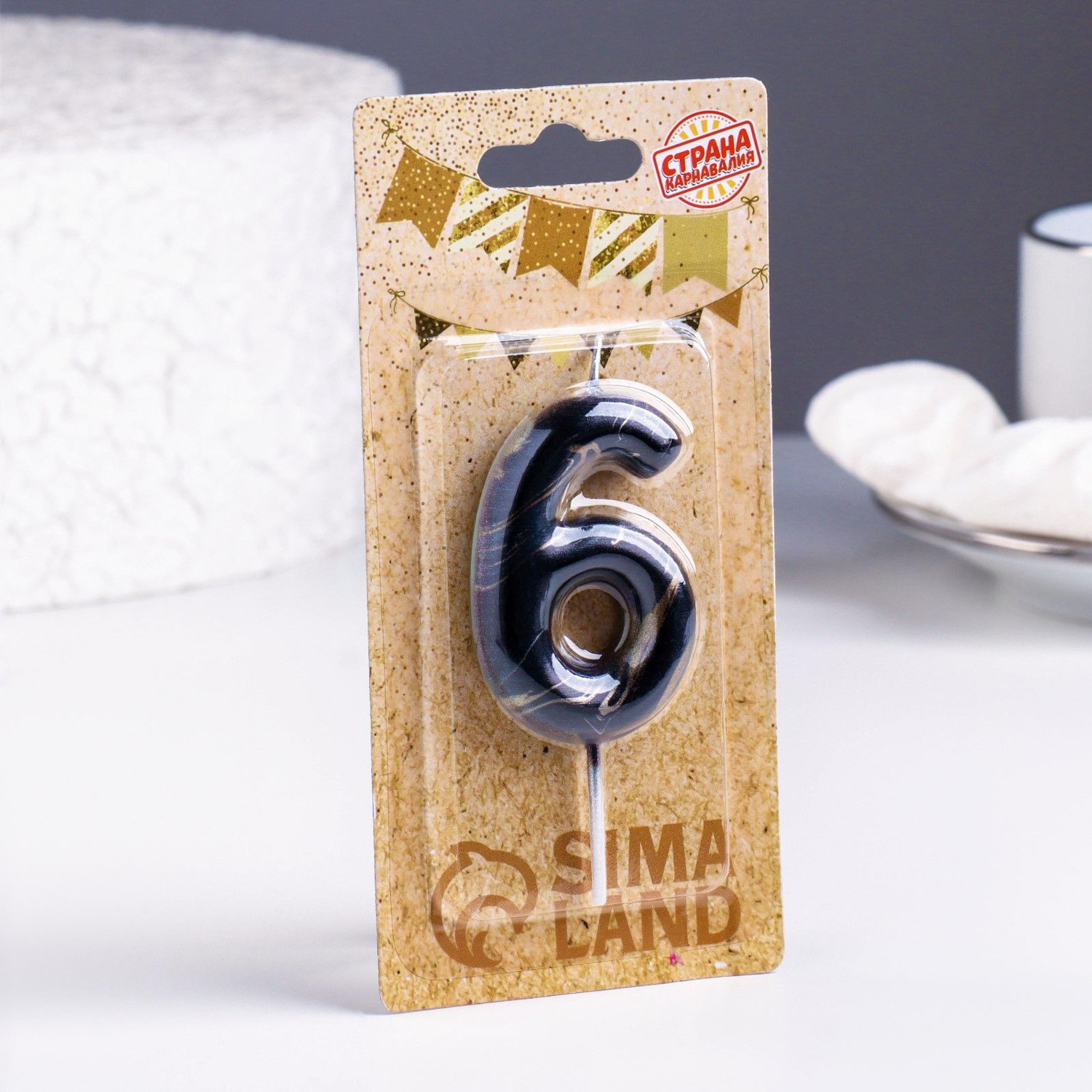 Свеча в торт "Черный мрамор", цифра "6", 8 см 6990860