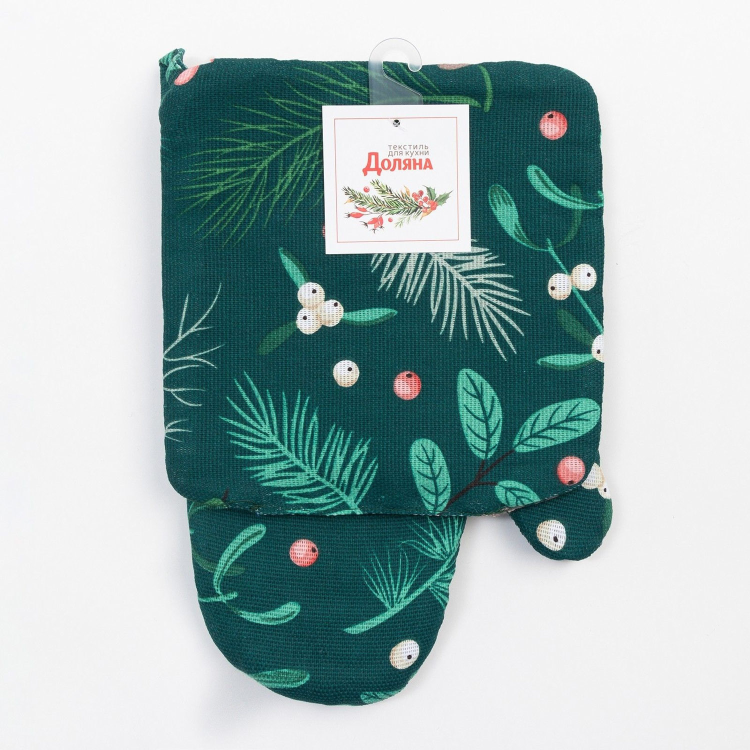 Набор прихваток Доляна Needles, варежка 20х27 см, прихватка 19х19 см, хлопок, зеленый