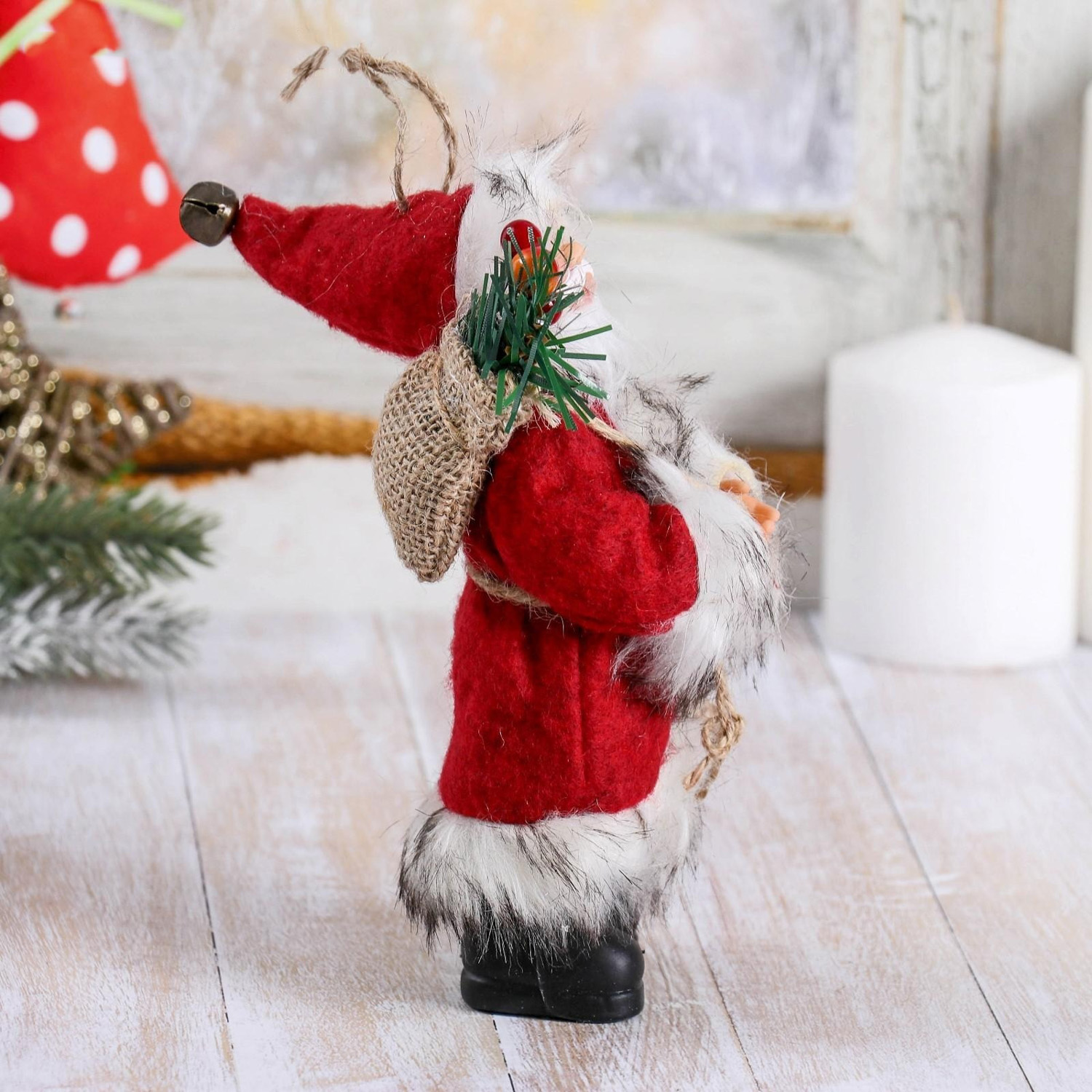 Дед Мороз в красной шубке с лесными гостинцами 16 см 4316754
