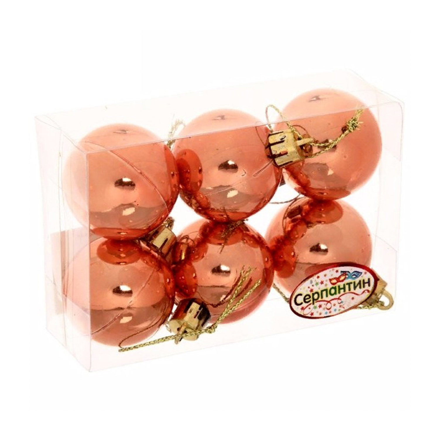 Новогодние шары 4 см (набор 6 шт) "Глянец", янтарь