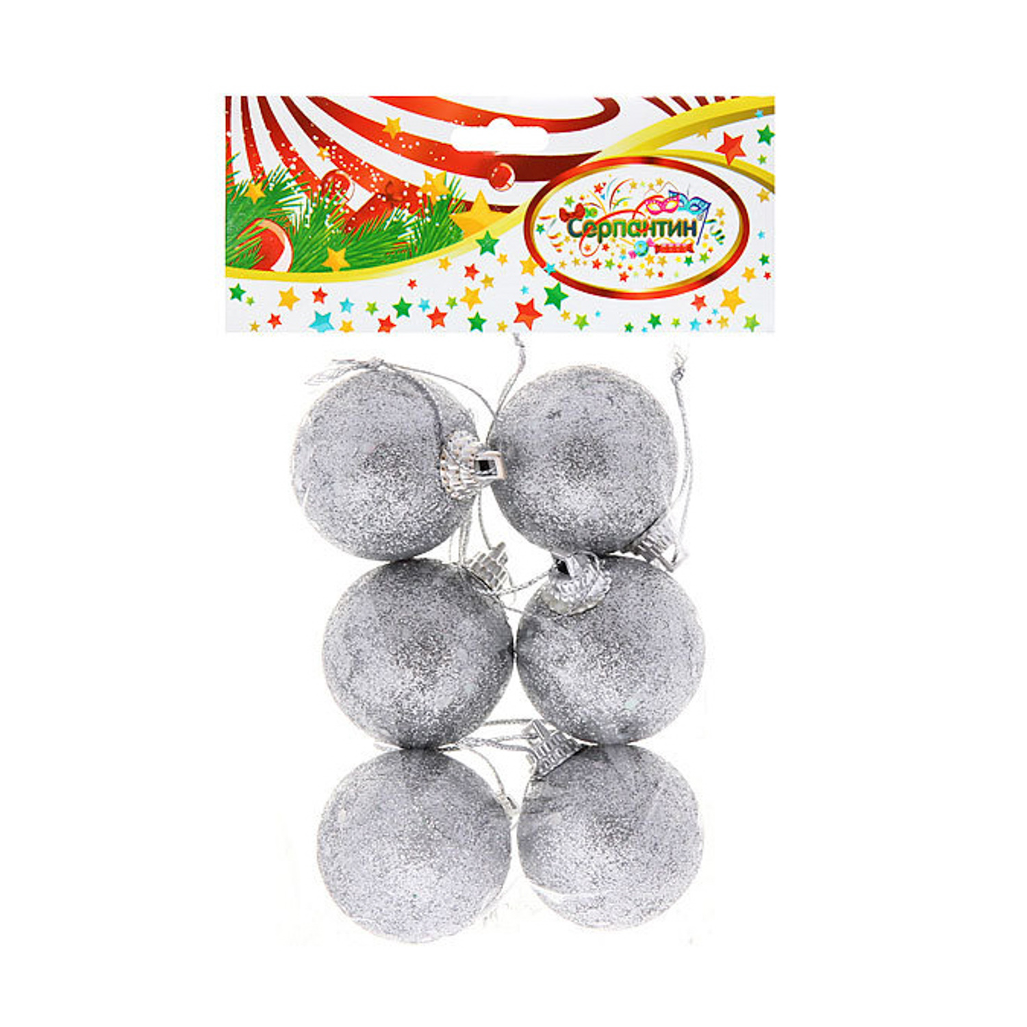 Новогодние шары 4 см "Посыпка из блёсток" набор 6 шт серебро