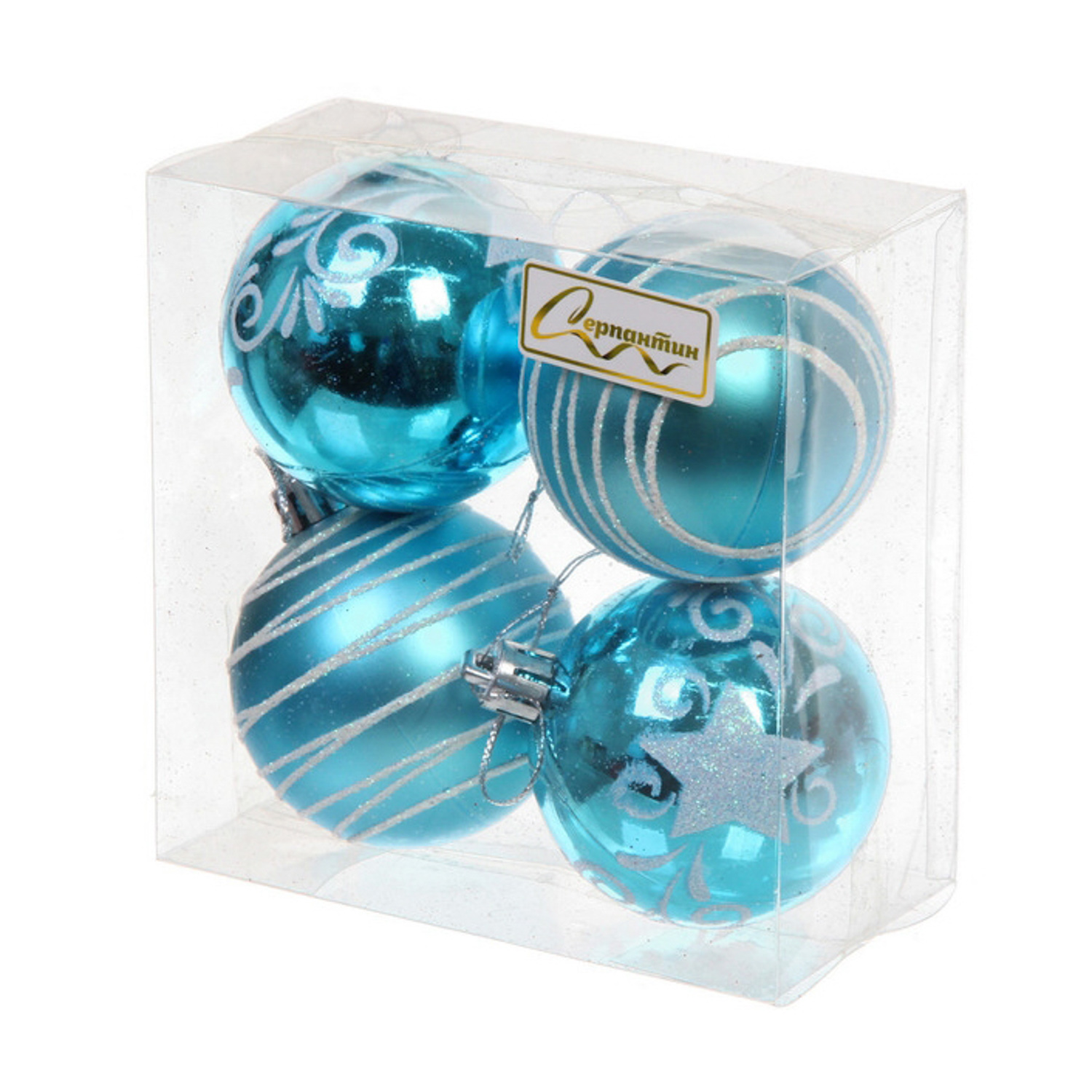 Новогодние шары 6 см (набор 4 шт) "Снежная дымка", Голубой