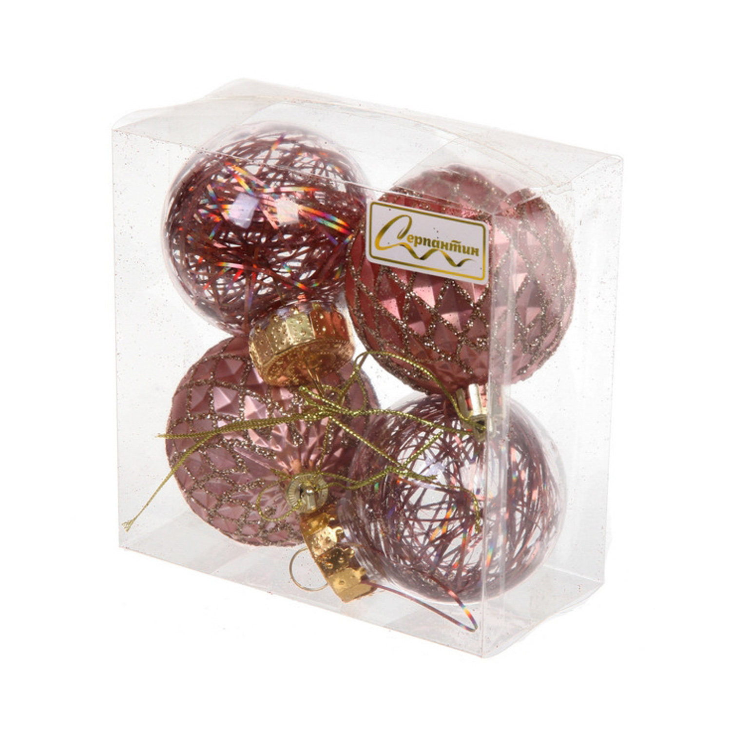 Новогодние шары 6 см (набор 4 шт) "Яркая метель", розовое золото/шампань
