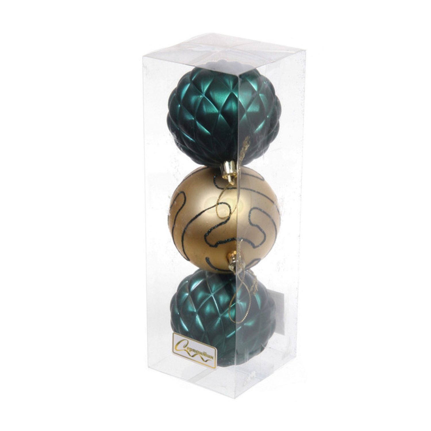Новогодние шары 7см (набор 3шт) "Сказочная мечта", золото/изумруд