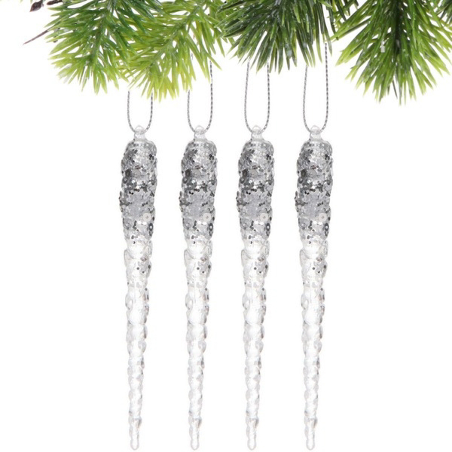 Подвеска "Хрупкие сосульки" 13 см (набор 4 шт), Серебро