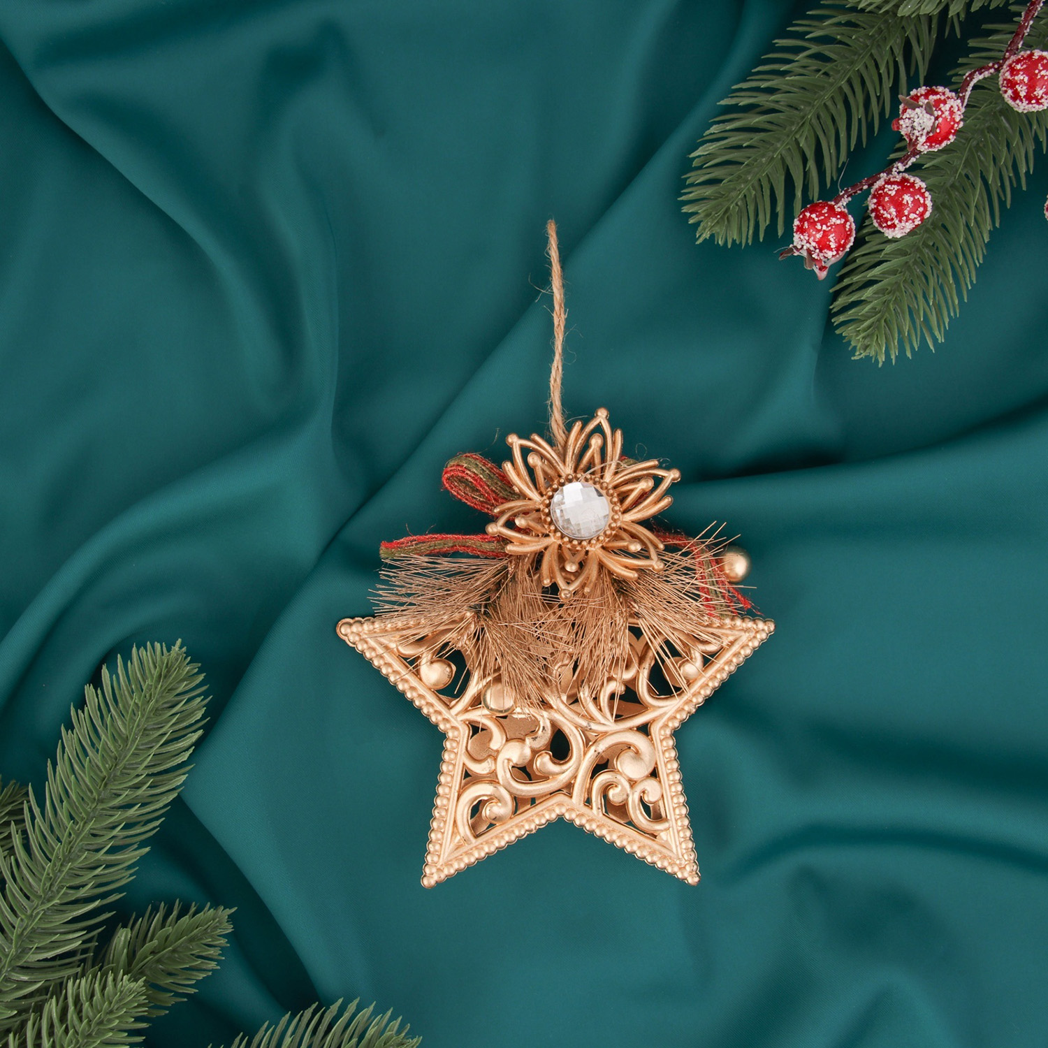Украшение ёлочное "Звезда с цветком" 12х12 см, золото   10514162