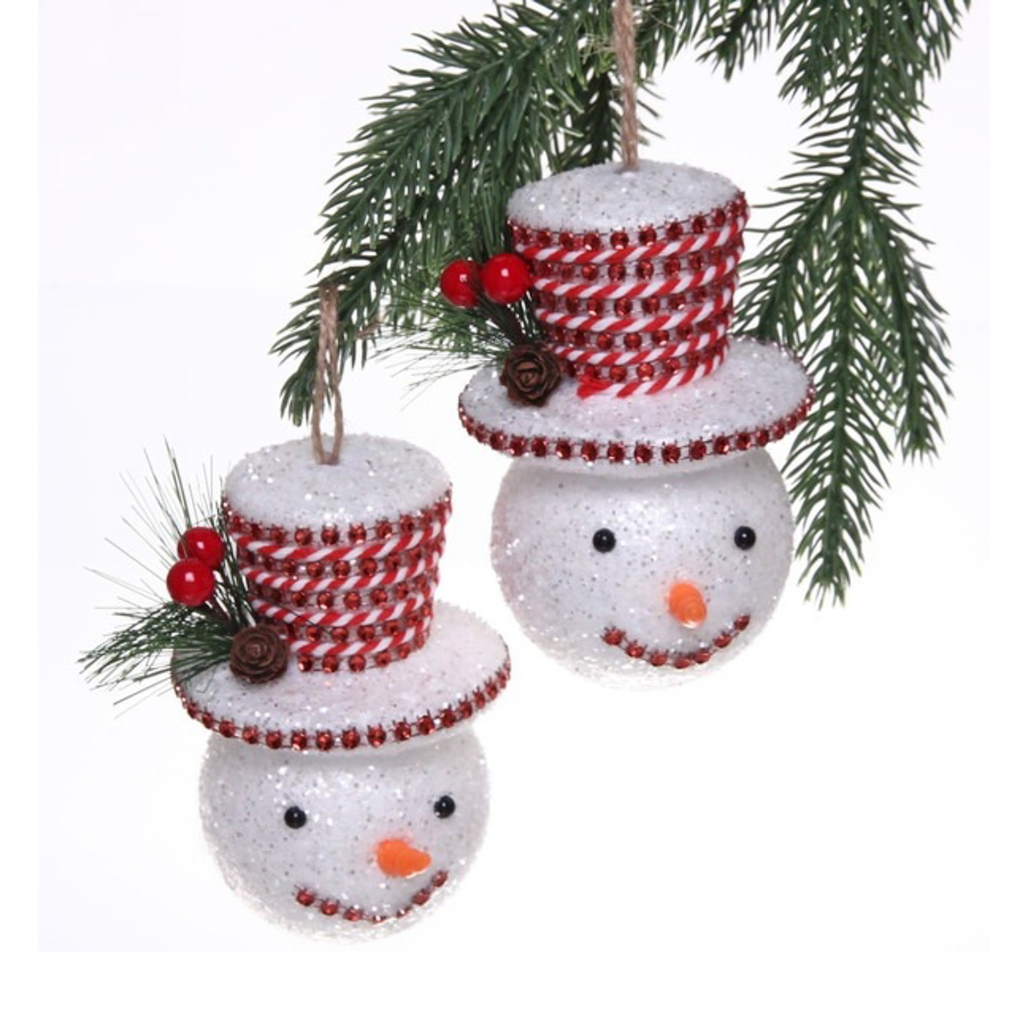 Ёлочные игрушки "Снеговик в шляпе со стразами" 10 см (набор 2 шт), Красный