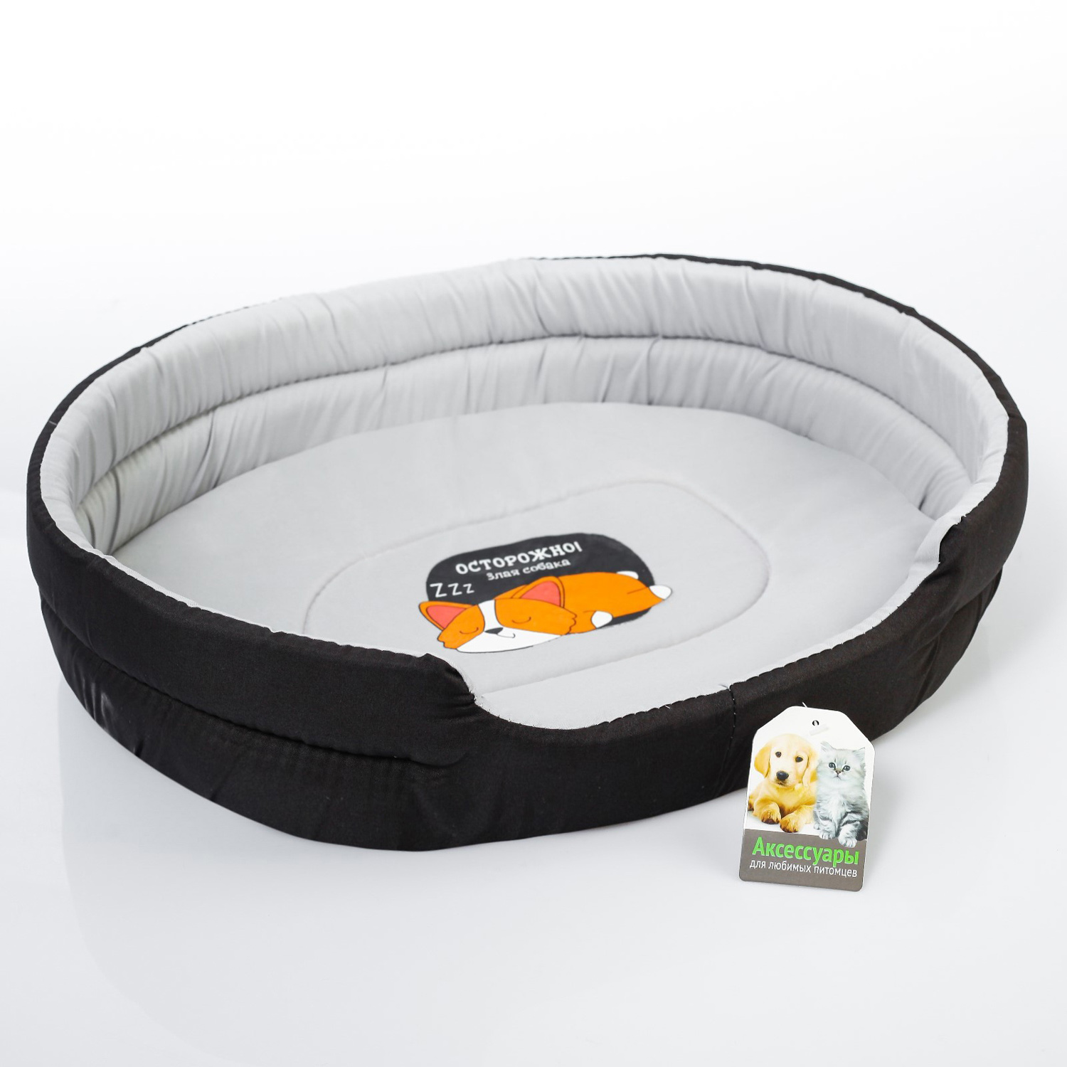 Лежанка овальная "Осторожно! Злая собака", 43 х 32 х 9,5 см 4122026